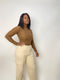 This cutout front top features a drawstring for control of the top’s front ruching effect. Pair it up with your favorite high waisted skirt or pants! Model is 5’6” 170 lbs, wearing a medium.